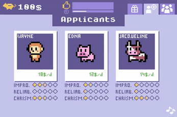 You will get the chance to manage and grow a company with many employees. Hire talented mascots and place them with the right customers. Lead your company to success and achieve 100% customer satisfaction over time.